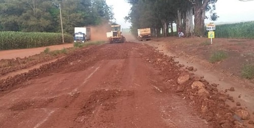 Máquinas e caminhões da prefeitura de Quarto Centenário trabalharam nesta quarta-feira na PR-180.