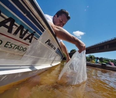 No último fim de semana foram soltos milhares peixes no rio, que passa por cinco municípios da região.