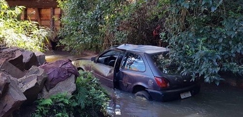 A foto é da Tribuna do Interior. Ford Fiesta foi encontrado nesta quinta-feira dentro do rio Km 119, entre o jardim Alvorada e o conjunto Fortunato Perdoncini. A Policia Militar foi chamada, mas não há registro de furto e o veículo ficou por lá mesmo. O dono é quem terá de retirá-lo.