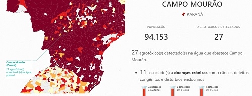 A água consumida em Campo Mourão tem a presença de 27 agrotóxicos.