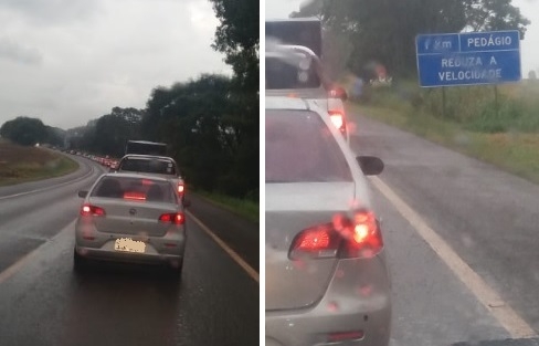 "A fila no pedágio de Campo Mourão estava com 2 km neste domingo à tarde".