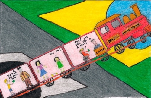Esse é o desenho de Luana Florêncio Garaluz, que venceu concurso nacional da Controladoria Geral da União. O tema era "Ser honesto é legal". Luana concorreu na categoria 5º ano pela escola do campo Caetano Munhoz da Rocha, que fica na comunidade rural do Alto Alegre, em Campo Mourão. O prêmio é referente a 2018. Nesta sexta-feira (9h) ela será homenageda na escola.