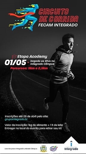 A corrida vai ser no câmpus do Integrado, com largada às 9h.