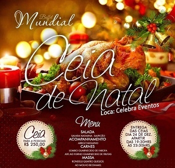 Últimos convites à venda para a ceia de natal drive thru do buffet Mundial, em Campo Mourão. Vendas somente até quarta-feira. Custa R$ 250 e serve até quatro pessoas. Tem arroz natalino, salpicão, salada natalina, rondelli de queijo, ave e lombo. A retirada será no Celebra, dia 24, das 19h30 às 23h30.