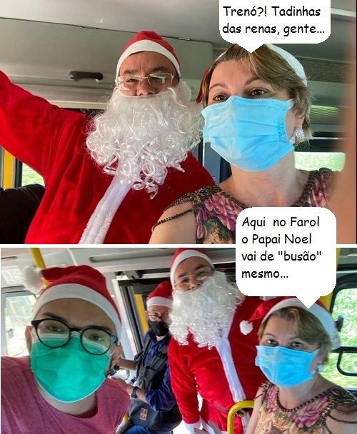 Os cliques são desta terça-feira, em Farol, onde a prefeitura distribuiu brinquedos para a criançada. Teve Papai Noel e tudo, mas nada de trenós e renas. O "bom velhinho" foi de ônibus mesmo, acompanhado pela prefeita Angela Kraus.