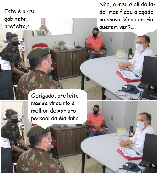 Em tempo: Tauillo atendeu o pessoal ao Exército em sala improvisada, já que gabinete foi alagado pela chuva da véspera.