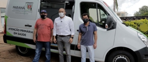 1) O deputado estadual Paulo Rogério do Carmo esteve nesta sexta-feira em Campo Mourão. Junto com os vereadores Tucano e Cabo Cruz entregou ambulância para a Secretaria de Saúde.