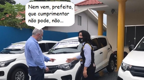 O clic é desta quarta-feira, em Rancho Alegre do Oeste. O deputado estadual Douglas Fabrício esteve por lá com a prefeita Suley Pereira para a entrega de três carros para a Secretaria de Saúde. Os Fiat Mobi custaram R$ 105 mil e vieram via governo do Estado, com uma mãozinha do parlamentar. Só que em tempos de pandemia, nada de cumprimentos com as mãos, hein?...