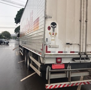 Caminhão pegando vaga de carros e moto em plena rua Brasil, no centro de Campo Mourão. Não era horário de carga e descarga. Cadê a fiscalização?