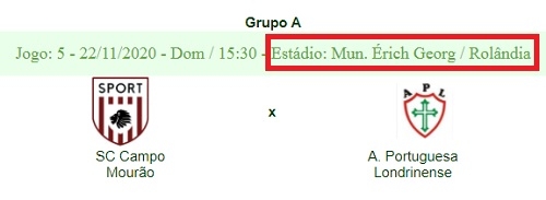 O Sport vai mandar seus jogos na Terceirona no estádio Erich Georg, em Rolândia, a 163 km de Campo Mourão.
