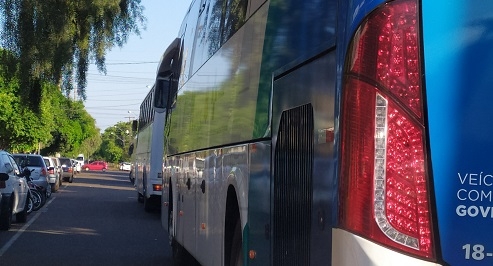 Novamente a cena se repete, o ônibus da frente já está acostumado a trancar a passagem. O de trás leva a fama. Em frente ao Cis-Comcam.