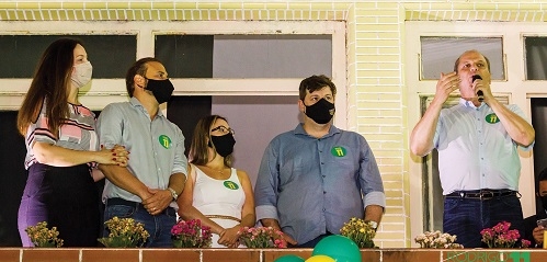 Quem disse que não se fazem mais comícios? O deputado federal Ricardo Barros, líder do governo Bolsonaro, esteve sexta-feira em Campo Mourão e discursou na sacada do comitê do candidato a prefeito Rodritgo Salvadori (PP), no centro de Campo Mourão. Os correligionários acompanharam do jardim.