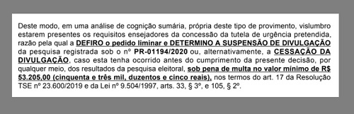 A liminar prevê multa mínima de R$ 53,2 mil em caso de descumprimento.