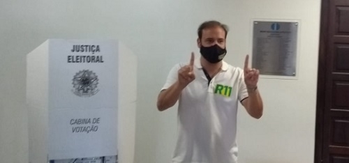 O candidato Rodrigo Salvadori (PP) votou por volta das 11h15, no Integrado.