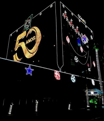 A Coamo acendeu nesta sexta-feira à noite a iluminação especial de Natal. Desta vez com a logo dos 50 anos, completados neste sábado. Por causa da pandemia o tradicional "Natal de luzes" foi diferente este ano. Teve música, teve chegada do Papai Noel e tudo, mas somente online.