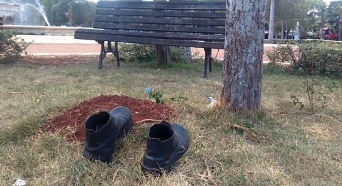 Onde o Judas perdeu as botas não se sabe. Mas alguém perdeu (ou esqueceu) as botinas na praça Getúlio Vargas, em Campo Mourão.
