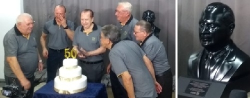 Por causa da pandemia, nada de grandes eventos nos 50 anos da Coamo, que serão completados neste sábado. Mas teve homenagens nesta sexta-feira para fundadores, diretores e funcionários. Também teve "parabéns pra você" num bolo simbólico, lançamemto de um livro do cinquentenário e, de surpresa para o presidente José Aroldo Gallassini, o descerramento de um busto dele, que é o idealizador da cooperativa.