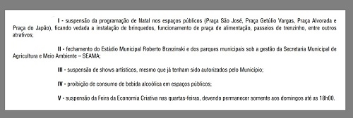 Também foi mantida a suspensão à programação de Natal nos espaços públicos.