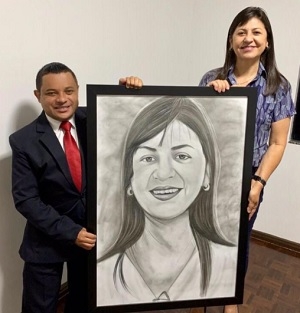 Por essa a ex-candidata a prefeita de Campo Mourão, Nivalda Sguissardi (PT) não esperava. Perdeu a eleição, mas ganhou um quadro do "recepcionista oficial" Magnum Alves. Quadro com desenho de Nivalda feito pelo próprio Magnum. Devido à pandemia, os eventos minguaram e o "recepcionista oficial" tem mais tempo para se dedicar aos desenhos de artistas e políticos.