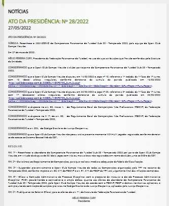 Motivo: Uso de jogadores irregulares nas duas primeiras rodadas do Paranaense Sub-20.