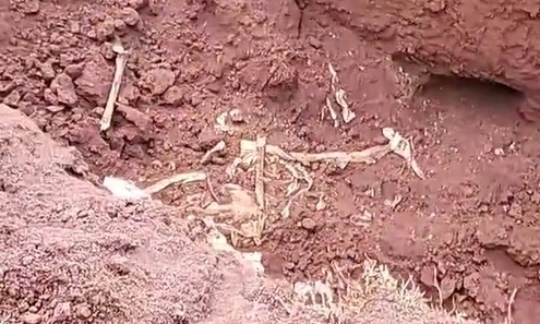 Uma suposta ossada humana foi encontrada nesta quarta-feira enterrada na calçada de uma rua do jardim Paulino, em Campo Mourão. A descoberta aconteceu durante escavação de uma empresa que presta serviços para a Sanepar. Como já existiu um cemitério por ali (fundos da Colacril), essa é a principal suspeita. O IML recolheu a ossada. (Foto: reprodução Campo Mourão Serviços/Facebook)