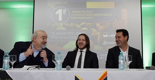 A Uvepar realizou nesta quarta-feira, em Curitiba, a abertura da 1ª Marcha dos Legislativos Municipais Paranaenses. O governador Ratinho Jr participou, assim como o prefeito de Curitiba, Rafael Greca. Detalhe: a União de Câmaras, Vereadores e Gestores Públicos do Paraná tem com presidente o vereador Fred Freitag, de Peabiru. O evento, que comemora dos 35 anos da entidade, segue até sexta-feira.