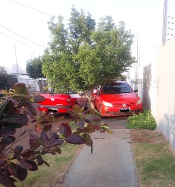 Carro estacionado sobre a calçada no jardim Veneza, sem deixar espaço para os pedestres.
