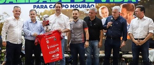 Ratinho Jr veio a Campo Mourão para a abertura do Encontro Regional de Gestores do Esporte. Teve entrega de kits esportivos para prefeituras. No discurso, é claro, aproveitou para falar de investimentos na cidade.