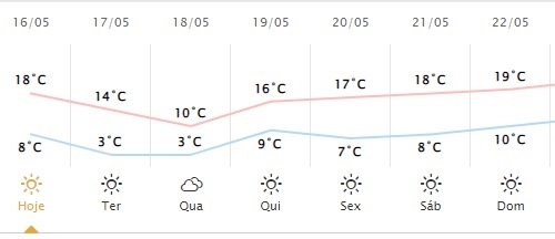 Esfriou, né? E prepare os casos que o pior ainda está por vir. Segundo o Simepar até domingo a temperatura fica abaixo dos 20°C em Campo Mourão. Na terça na quarta as mínimas serão de 3°C. Na quarta, a máxima não passa de 10°C. Depois vai esquentando, mas somente na próxima segunda-feira é que os termômetros devem ficar acima dos 20 (e só um pouquinho acima, com 21 graus).