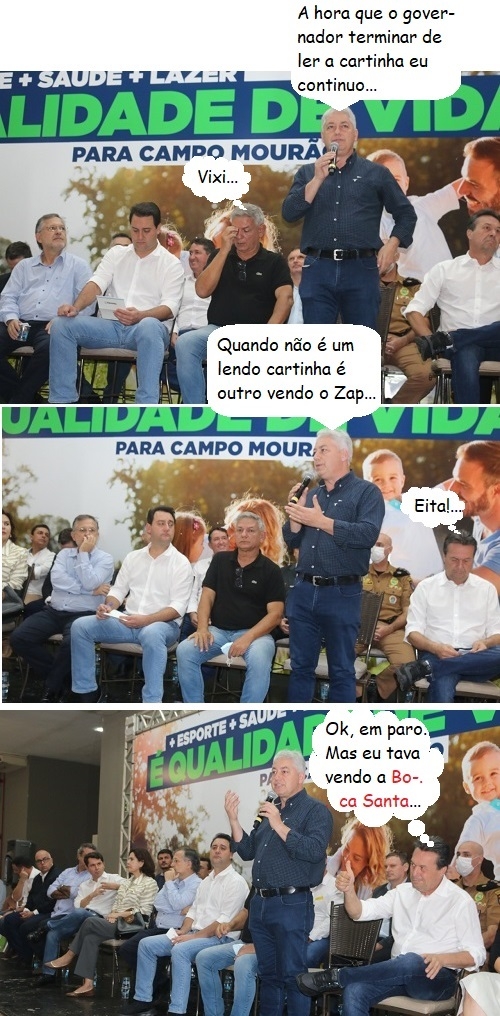 "Era costuma aqui dar sempre o nome dos "bom da boca". Os "bom da boca" ficam pra depois. Vamos prestigiar quem luta e trabalha por Campina da Lagoa".