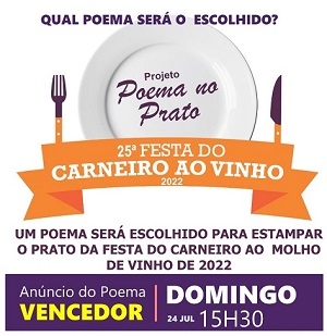 Peabiru - A prefeitura anunciará no domingo (15h30) o poema que será impresso no prato da Festa do Carneiro ao Vinho. Quase 200 trabalhos foram inscritos e 18 foram selecionados para a final.