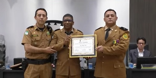 Sessão da Câmara de Campo Mourão sem homenagens, não é sessão da Câmara de Campo Mourão. Nesta terça-feira aconteceu a entrega da moção ao subtenente José Rubens Soares, pelos mais de 30 anos de serviços prestados à Polícia Militar. A iniciativa foi do vereador Subtenente Macedo. Alunos da Escola de Formação de Soldados participaram da sessão.