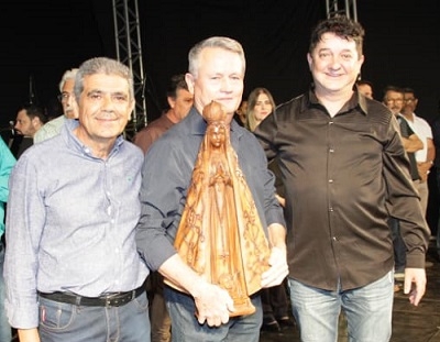 Três prefeitos foram prestigiar a festa dos 60 anos de Janiópolis, que aconteceu no fim de semana. O presidente da Comcam, Leandro de Oliveira (Araruna), foi um deles. Cássio Zanuto, de Rancho Alegre do Oeste, foi outro. O terceiro foi Oclécio Meneses (Farol), que levou de presente ao prefeito Ismael Dezanoski uma imagem de Nossa Senhora Aparecida feita em madeira.