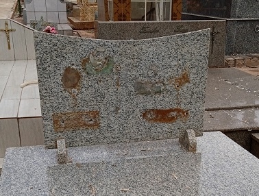 "Em Janiópolis nossos entes queridos não têm paz. Quase toda semana há furtos em túmulos. Levam tudo. Esta foto mostra todas as fotos e as placas roubados, são muitos túmulos saqueados. Pedimos ajuda".