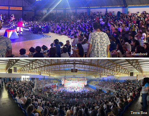 Ginásio de esportes de Terra Boa lotado nesta terça-feira para o espetáculo "Palhaços Cantores do Sou Arte". O mesmo já tinha acontecido na véspera em Luiziana e Mamborê. O espetáculo da Associação Sou Arte reúne circo, teatro, dança e música. A turnê é uma realização do Ministério do Turismo, através da Lei de Incentivo à Cultura.