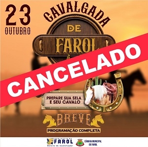 A prefeitura de Farol anunciou nesta quarta-feira que foi cancelada a cavalgada que aconteceria no próximo dia 23.