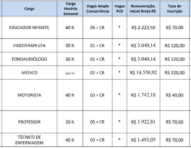 A prefeitura de Nova Cantu abriu concurso público com 20 vagas, mais cadastro de reserva, em sete cargos. As incrições começaram nesta sexta-feira e seguirão até 10 de novembro. Os salários variam de R$ 1,7mil a R$ 14,5 mil. A relação de cargos, salários e valores da taxa de inscrição está no quadro acima.