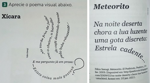 Dois poemas do professor Fábio Sexugi, de Peabiru, voltaram a ilustrar livros didáticos distribuídos em todo o Brasil. "Meteorito" e "Xícara" foram publicados nos livros de língua portuguesa do 3° e 4° ano da Coleção "Bem-Me-Quer", da Editora do Brasil. A obra foi distribuída para todas as escolas públicas do país, por meio do Plano Nacional do Livro Didático 2023. Não é a primeira vez que o professor peabiruense tem textos publicados em livros didáticos.