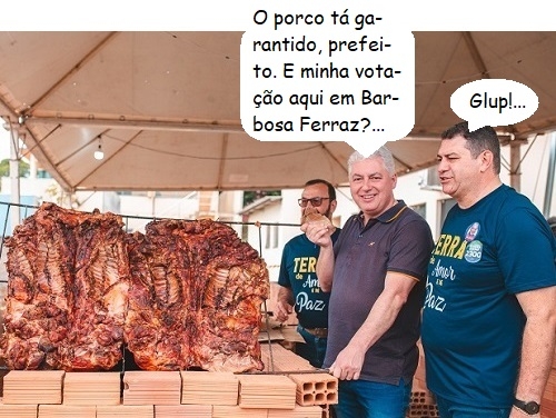 O clic é de domingo passado, quando Barbosa Ferraz realizou a Festa do Porco Garantido, o prato típico da cidade. O deputado Douglas Fabrício esteve por lá e fez pose ao lado do prefeito Edenilson Miliossi. Também estavam na festa do deputado federal Rubens Bueno e os prefeitos Leandro de Oliveira (Araruna), Júlio Frare (Peabiru) e Fábio D"Alécio (Ubiratã).