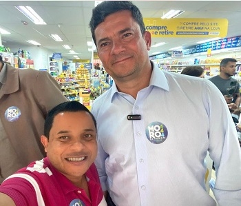 Candidato ao Senado pelo União Brasil, o ex-juiz federal e ex-ministro Sérgio Moro esteve em campanha nesta terça-feira em Campo Mourão. Ele visitou empresas, tomou cafezinho no calçadão e esteve na Acicam, onde conversou com empresários por cerca de 45 minutos. Ah, claro! Não escapou de uma foto com o "recepcionista oficial" da cidade, Magnum Alves.