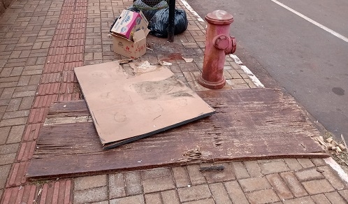 Dois meses depois, a porta continua na calçada da rua Francisco Albuquerque em frente ao Recanto dos Tropeiros. Cada vez mais podre, mas intocável no centro de Campo Mourão.