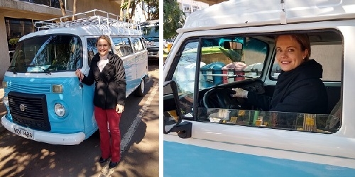 A vereadora Naiany Salvadori apareceu de Kombi, nesta sexta-feira, na Câmara de Campo Mourão. E uma "Kombosa" toda cheia de estilo. O veículo vai ser rifado numa ação entre amigos para ajudar evento anual "em defesa da família e dos valores cristãos". "Kombi relíquia", diz a divulgação. Cada número custa R$ 100. O sorteio é pela Loteria Federal do dia 29 de outubro (19h).