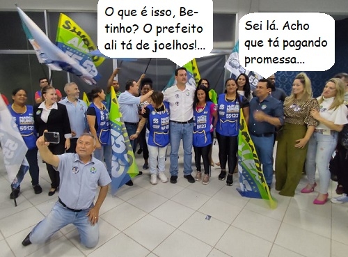 O clic é de sexta-feira, em Goioerê, durante evento de campanha que teve a presença do governador Ratinho Jr. O deputado Márcio Nunes e o prefeito Betinho Lima estão com o governador enquanto o prefeito de Quarto Centenário, Ivo Akio, ficou de joelhos para caprichar na selfie...