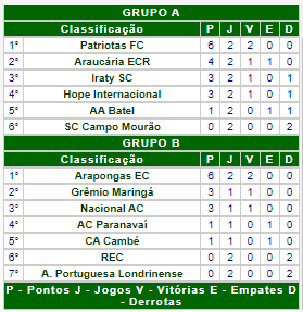 Luiziana x Holanda e Engenheiro Beltrão x Quinta do Sol.