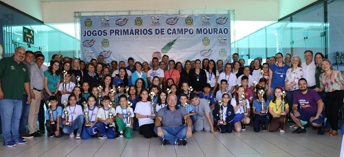 A prefeitura de Campo Mourão entregou nesta sexta-feira a premiação aos vencedores dos 18.o Jogos Primários. A cerimônia aconteceu no Centro da Juventude e reuniu alunos, professores e diretores de escolas públicas e particulares. A disputa, em setembro, envolveu 29 escolas, com alunos de 6 a 11 anos, em 16 modalidades.