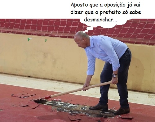 O clic é de Altamira do Paraná, onde a prefeitura iniciou as obras de reforma e ampliação da quadra do ginásio de esportes Zeninho Pires Martins. A quadra ganhará novo piso. O prefeito José Etevaldo Branco esteve no ginásio e deu uma mãozinha na retirada do piso antigo.