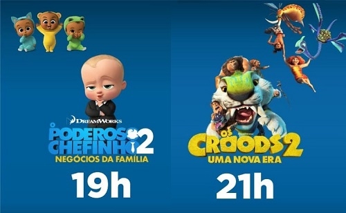 O projeto Cinema na Praça, do governo do Estado, passa neste fim de semana por três cidades da região. Neste sexta estará em Moreira Sales, no sábado em Boa Esperança e, domingo, em Goioerê. Em cada cidade, duas sessões - às 19h "O Poderoso Chefinho 2" e, às 21h, "Os Croods 2".