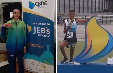 Lembra dos dois estudantes da equipe de atletismo de Campo Mourão que foram os Jogos Escolares Brasileiros, no Rio de Janeiro? Fizeram bonito e conquistaram três medalhas. Isadora Fiorini foi ouro no lançamento de dardo e bronze no lançamento do disco. Renato Almeida foi prata os 5.000 marcha atlética. Isadora representa o colégio Olavo Bilac, de Peabiru, e Renato o Unidade Polo, de Campo Mourão. O treinador Sidmar Andrigheto acompanhou os atletas.
