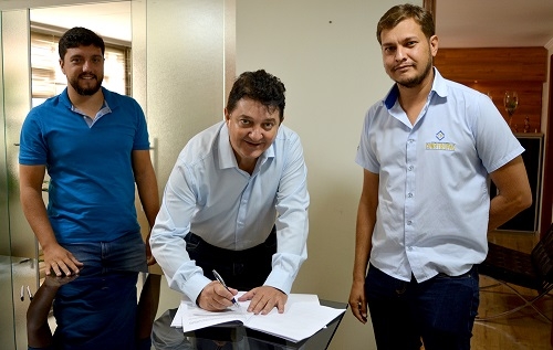 O clic é desta sexta-feira, quando o prefeito de Campo Mourão, Tauillo Tezelli, assinou o contrato de R$ 16 milhões para troca de todas as lâmpadas das ruas cidade por lâmpadas de led. Ao fundo, os vereadores Olivino Custódio e Elvira Schen.