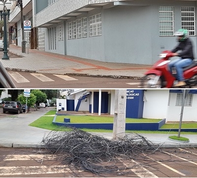 "Será que a prefeitura recolheu o lixo de fiação na esquina do Centro Catequético ou algum santo levou? Em outro ponto, tiraram da calçada e jogaram na rua. Se alguém por um acaso sofrer um acidente em função desses fios na rua, quem será processado na justiça? Será que a prefeitura notificou alguém? Até quando essa fiação vai ficar jogada?"